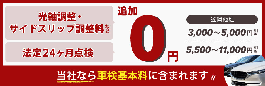 当店では上記のすべて、ホームページに記載してある車検基本料に含まれていますので、ご安心ください。